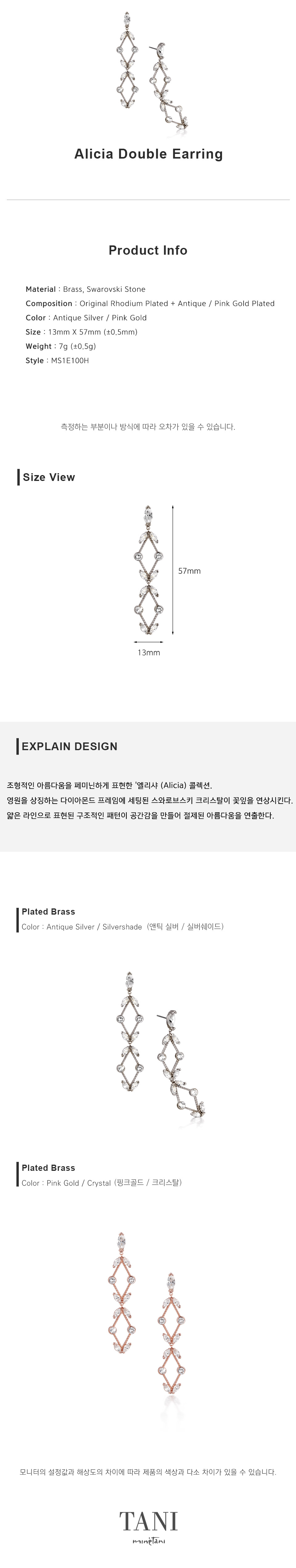 구성 : 오리지널 로듐 도금 + 엔틱, 핑크골드 도금