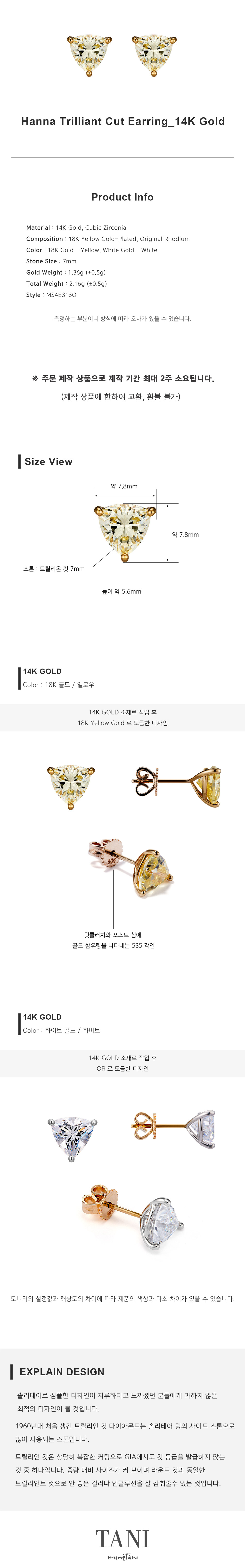 구성 : 18K 옐로우 골드 도금, 오리지널 로듐 도금