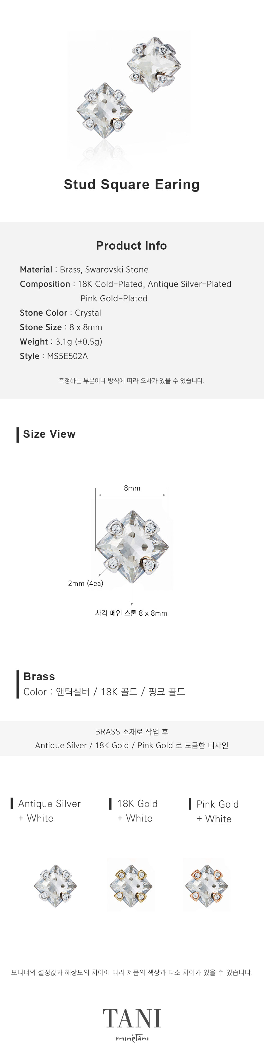 구성 : 18k 골드 도금, 앤틱실버 도금, 핑크골드 도금