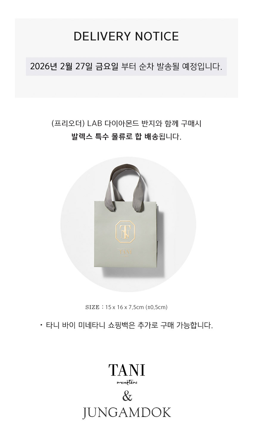 TANI BY MINETANI는 CJ 대한통운을 이용하며, 해외 배송 건은 우체국 EMS를 이용합니다. 배송비는 아래와 같습니다.